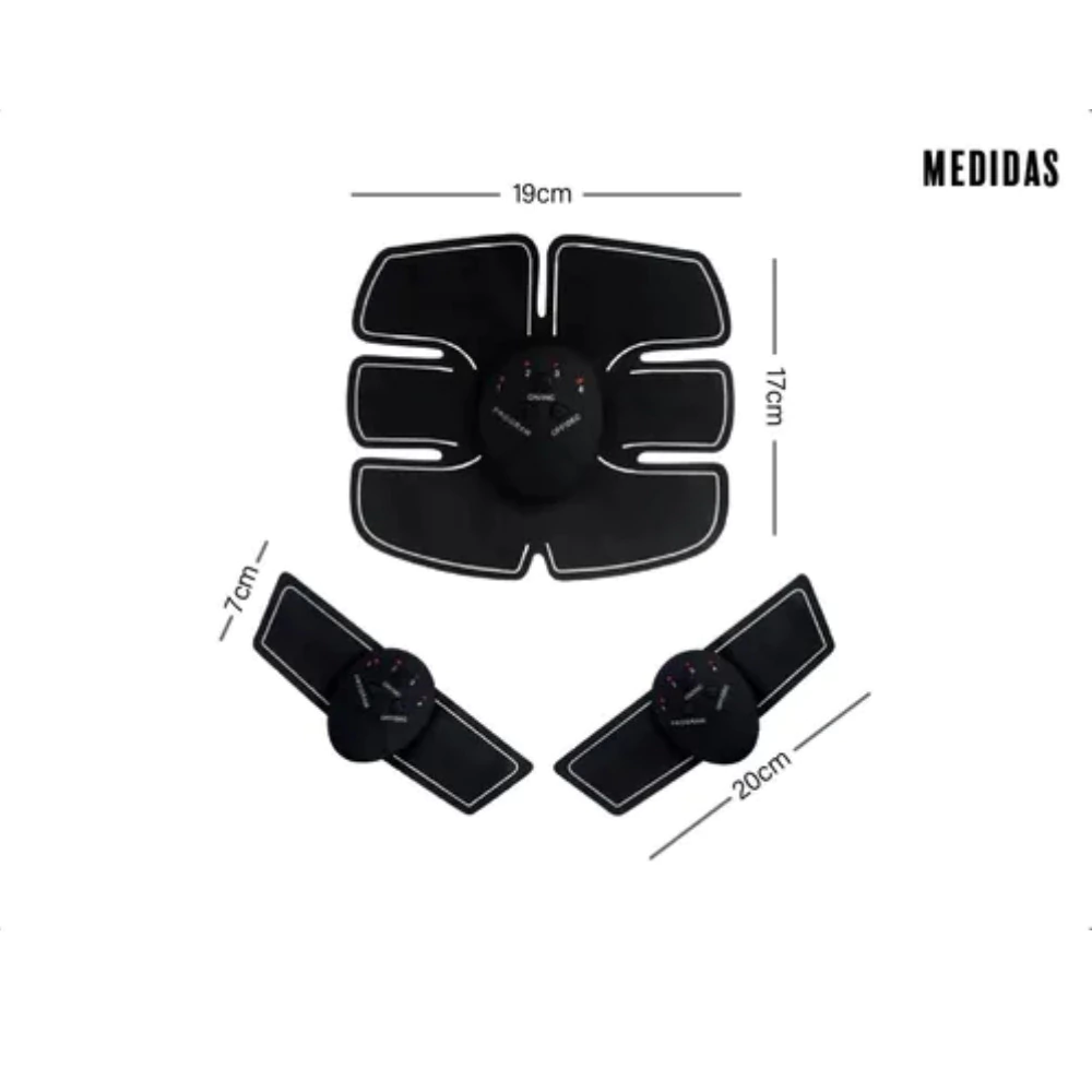 El Kit Electro estimulador® 3X1 incluye un pad abdominal + 2 pads para brazos/piernas con tecnología EMS (estimulación muscular eléctrica) para activar y tonificar grupos musculares de forma cómoda, inalámbrica y portátil donde estés.